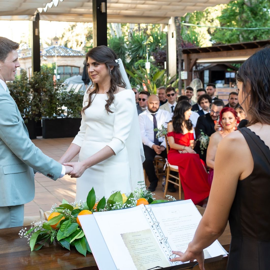 ¡La experiencia y conocimientos de Clara en este campo definitivamente nos dejaron boquiabiertos! Su atención al detalle cuando hablamos con ella fue muy impresionante e hizo un gran trabajo con la estructura de ceremonia, una historia de amor para que el evento fuera relevante para nosotros como pareja y nuestros invitados. ¡Recomendaría a Clara a cualquier pareja bilingüe que quiera casarse en la hermosa ciudad de Sevilla o en cualquier lugar del mundo...!